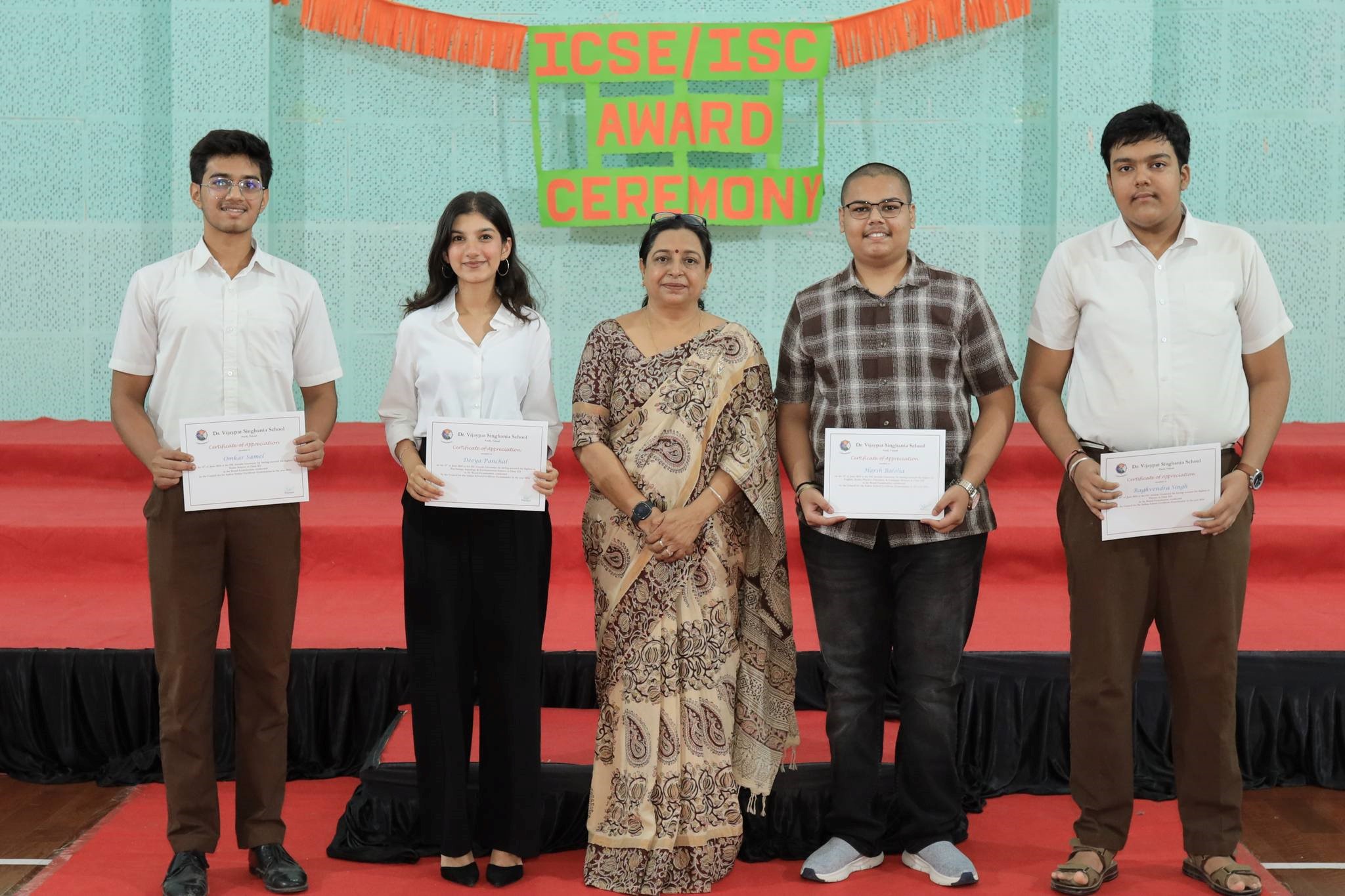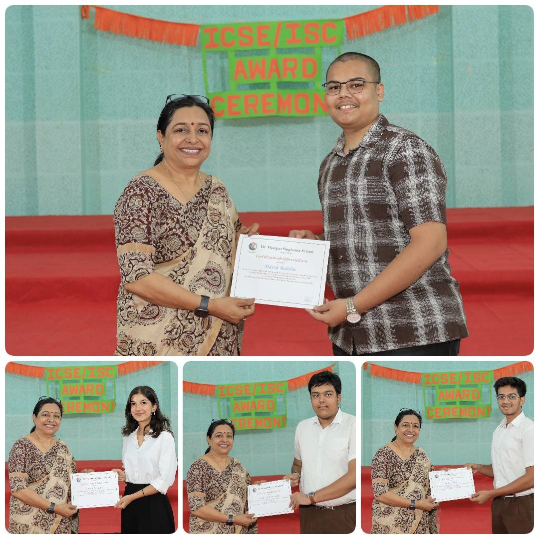 Motivation and appreciation are the key to success”. Dr. Vijaypat Singhania School had organized the award ceremony on 15 th June 2024, for all the students who excelled in the Board examination. Our heartiest Congratulations to all the students, teachers and parents for their hard work and dedication. This event was indeed a special one as the proud parents witnessed their children receive the certificates from our honourable Principal Madam Mrs. Ravindra Grewal.